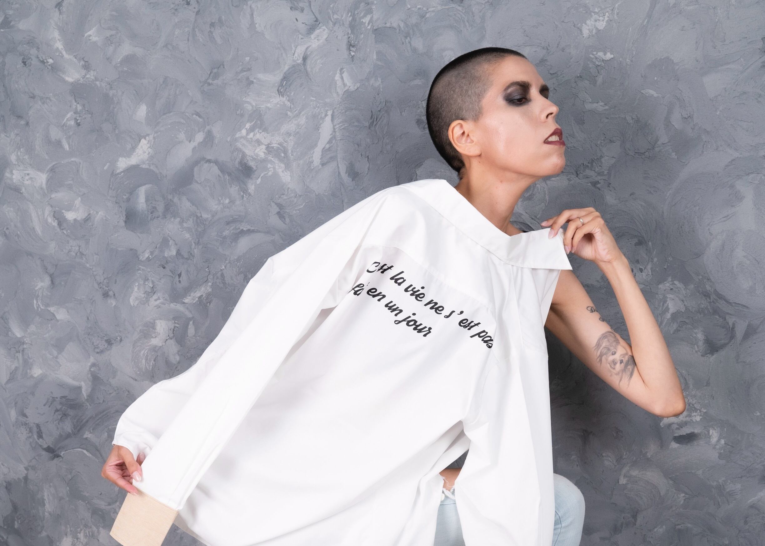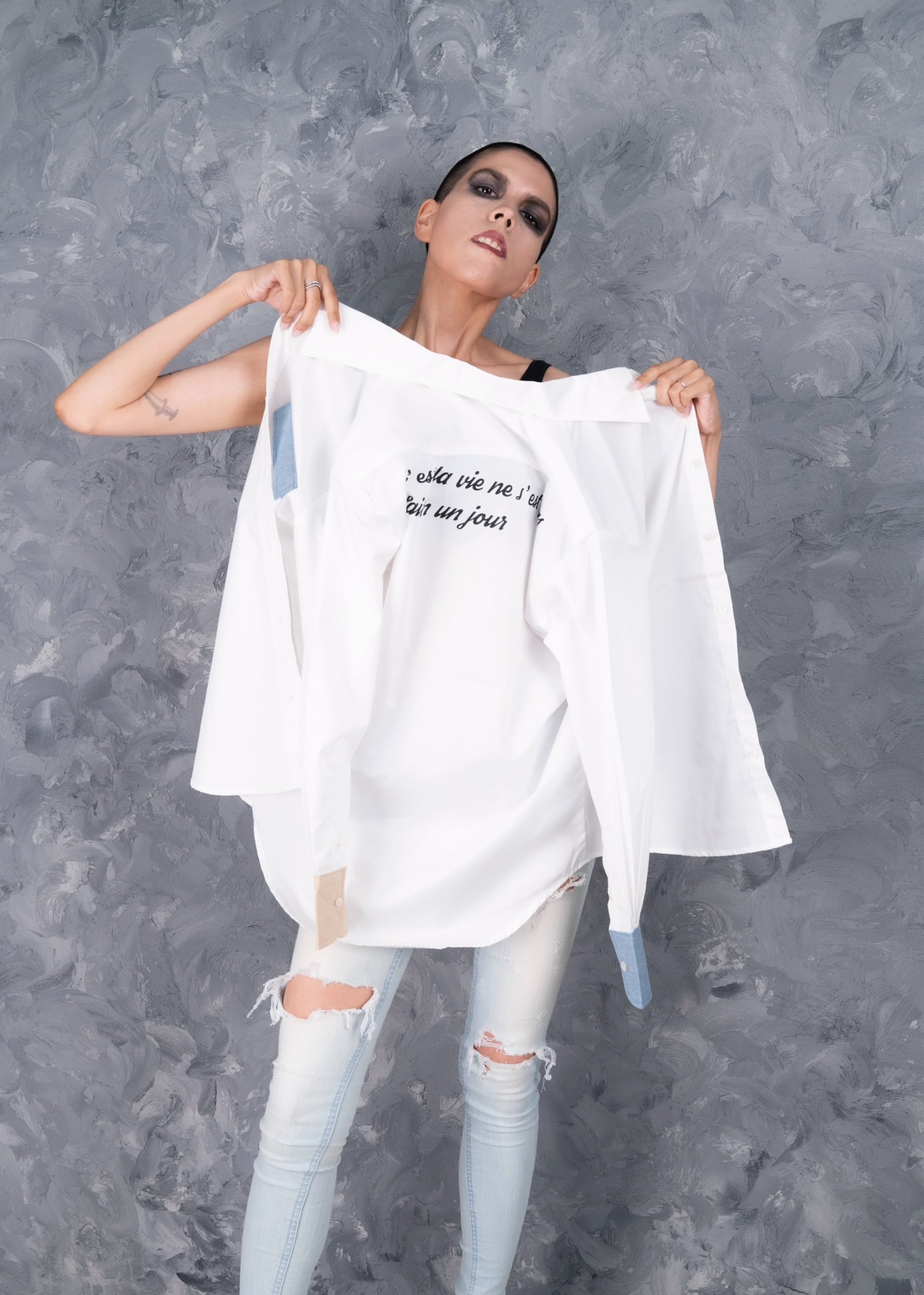 カフス配色シャツ